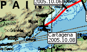 A város nevezetességei egytől-egyig zárva voltak, de azért kívülről láthattunk egy római színházat, és feleslegesen az erődhöz is felcaplathattunk. Cartagena egy meglehetősen szegény város benyomását keltette szűk kis sikátorokkal és romos házaival. Az utcák kihaltak voltak, túristák elvétve. Az útikönyv szerint Cartagena néhány évtizeddel ezelőtt jobb napokat is látott. Akkoriban a NATO 6. flottája tartózkodott itt, és ez azért komoly bevételi forrást jelentett a városnak. Az egész kikötő olyan, mint valami eődrendszer. Még hadihajókat és sziklába vájt bunkereket is látni. A kikötő előtt a parton egy nagy tengeralattjáró is ki van állítva, amely 19. század végén épült. Állítólag akkoriban nem tulajdonítottak nagy jelenséget a találmánynak. Pech. | Napi poziciók: