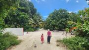 Horgony pozíció: 6-42.9 N, 72-55.1 E | 12. nap, 2024.04.17. , Átmotoroztunk Nolhivaranfaru-hozMegint nem volt szél, ezért átmotoroztunk egy kisebb szigethez, Nolhivaranfaru-hoz. Már lemenőben volt a nap, amikor a szigethez értünk, ami körül zátonyok vannak. Szerencsére, elég mélyen voltak 4-5-6 méter víz volt alattunk, mire elértünk a sziget előtti homokos részre. Ledobtuk a horgonyt és csobbantunk egyet, szerencsére itt a Maldívon még nem találkoztunk medúzával. . | 13. nap, 2024.04.18. , NolhivaranfaruSzép időre ébredtünk, a nap korán reggel tűz, úgyhogy felkötöttük a naperllenző ponyvákat. Továbbra sincs szél, teljes nyugalom a horgonyzóhelyen. Úgy döntöttünk, hogy itt az ideje egy kis palancsitát sütni reggelire. Ezután kicsónakáztunk a partra, a kismotort ki kellett tisztítani. Partra érve gyönyörű fehér homok fogadott minket és a mecset hangja. A kis településen éttermet, mosodát kerestünk. Nagyon rendezettek voltak az utcák, elegánsak az emberek. A sziget nagyon hosszú, de keskeny, már az első utca után látszik a sziget másik vége. Volt rajta egy egészségügyi közpent, ahol felirattunk gyógyszert és kiderült, hogy az ápolók Kochi-ból jöttek. Majd egy rezort éttermét akartuk kipróbálni, de nagyon drágának találtuk, ezért inkább egy kis helyi éttermet választottunk, amivel jól is jártunk. A csirkés tésztát megtudták csinálni csili nélkül, ígx Johanna egy felnőtt adagot evett meg, úgy ízlett neki az étel. Aztán a sarki házban láttuk, hogy ruhák száradnak. Bekopogtunk, hátha tudnak mosni. Sikerült odaadni a ruhát nekik. A helyi pénz a maldív rúfia (25-tel kell szorozni FT-ra átszámítva), de nincs ATM a szigeten. Az étteremmel szembeni kis boltban vettünk paradicsomot, banánt és kenyeret, majd kipróbáltuk a helyi játszóteret. Nagyon újnak nézett ki. Minden olyan rendezett ezen a szigeten. A játszótér fölött hatalmas gyümölcsevő denevérek röpködtek. Naplemente előtt értünk vissza a hajóra, csobbantunk egyet, majd a trambulinon fogyasztottuk el a vacsoránkat.