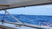 Éjfélkor ismét 16 csomóra nőtt a szél és egy újabb squall 23 csomós széllel érkezett. Szerencsére a fővitorlát reffelve tartottuk, így elég volt csak ejteni kicsit a hajón. Közben egy teherszállító hajó célzott meg minket oldalról, természetesen pont a squall közepén. Másfél mérfölddel mögöttünk ment el. Ez különben jellemző, hogy napokig nem látunk hajót, aztán jön egy amelyikkel pont ütközési ponton vagyunk.