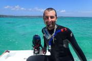Az üdülő most olyan mint egy szellemváros 2 nappal ezelőtt hagyta el több mint 300 tengeri kutató, akik három hónapon keresztül itt táboroztak. Találkoztunk a tábor vezetőjével, aki holnap szintén elhagyja a szigetet. Van itt egy modern hotel is a parton, de abban sincs jelenleg sok turista. A sziget mólójára kötöttük a bocit és néztük, hogy a helyi halászok hogy fogják a halat a naplementében a kenujukból. Közben befutott egy hatvan lábas ausztrál hajó a rally-ból, beköszöntünk nekik mielőtt visszamentünk a hajóra. | 22. nap, 2015.08.14. , Éjszakai sznorkelLassan indult a reggel. Jógáztunk a fedélzeten, amikor a szomszéd ausztrál hajó legénysége (négyből ketten) edzésként szörfdeszkán körözött a hajónk körül. Visszafele felhívtuk őket a hajóra. Kiderült, hogy még nem reggeliztek, ezért a tea és banánsütemény is előkerült. Majd azt láttuk, hogy az egyik mexikói hajó legénysége egy másik szörfdeszkán egy vízhatlan zsákkal a szájában elindul az ausztrál hajó felé. Itt már csak így közlekedünk... Kiabáltunk neki, hogy ne arra menjen, hanem a mi hajónkra jöjjön, mert itt a legénység is. Kiderült, hogy a mexikói hajó legénysége szakács és kenyeret sütött (ez volt a vízhatan zsákban). Így hát mindenki jól megreggelizett nálunk. Ami érdekes, hogy vajat itt nem igazán lehet kapni, ezért jól jött, hogy nekünk még volt tartalékunk.