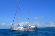 A rádiózás után behajóztunk az atolba (egyenes behajtás a zátonyokat már a reggeli napfényben is jól láttuk). két mexikói hajó volt a horgonyzóhelyen, akik nincsenek a rally-ban, de már láttuk őket korábban Vanuatun. Ideje volt bemutatkozni nekik. Kiderült, hogy a hajóskapitányok testvérek.