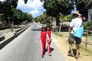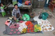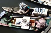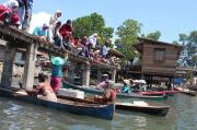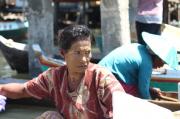 | 23. nap, 2015.08.15. , Water world (Vízvilág) | A halpiac | | Festik az arcuk a nők | Említettük, hogy van itt egy kis halászfalu mellettünk, de lehet, hogy ez nem is egy falu hanem három különböző. Apályban egy kis csatornán keresztül lehet megközelíteni. Az első falu előtt moszat farm van, keresztben kassul mennek a zsinórok a moszatképződményekkel kis labirintust alkotva. Elég nehéz ezt a falut megközelíteni. A következő faluhoz van egy móló, mely a falu főutcájába torkollik. A gyerekek piros és fehér ruhában (az indonéz nemzeti lobogó színei) már a függetlenségi napra készültek. Innen jobbra találtuk meg a piacot. Ezen a piacon sokkal jobbak az árak, mint a városban. A mandarin kiloját pl 1 dollárért tudtuk megvenni és a tojás is olcsó. A piacokon árulnak ruhát, zöldséget és gyümölcsöt is. Nekünk legjobban a halpiaci rész tetszett. A falutól nem messze van egy kis cölöpökön álló halászfalu. Igazi Water world építmény a Kevin Costner utáni filmből. Minden házhoz van egy csónak és a házak cölöpökön álló hidakkal vannak összekötve. Indonézia Velencéje. A halászok innen hordják a halat a kenujukkal a piaci hídhoz, majd megállnak alatta a kenujukkal. A vevők a hídról licitálnak a halakra, majd ha létrejön az üzlet vagy a kenuból felágaskodva cserél gazdát a rupia és a hal vagy evezővel tolják fel a halat a hídra egy zacskóban majd a pénzt galacsinná gyúrva bedobják a kenuba. Az indonéz nők nagyon büszkék a bőrükre és nem akarják, hogy nap érje, ezért többször láttuk, hogy befestik ezért olyan mintha szépségmaszkot hordanának az utcán. A halárus nők a kenukban vagy farmer kalapot (kerek tányér) viseltek vagy befestették az arcukat a nap ellen. Összesen 6 mérföldet bociztunk és pont elég lett az üzemanyag egy tankkal és evezni sem kellett végül.