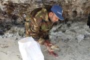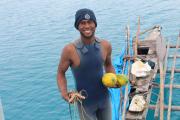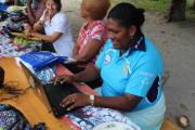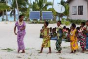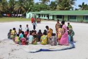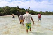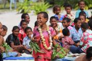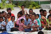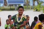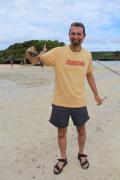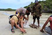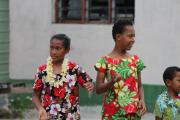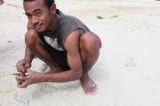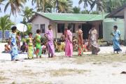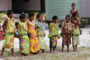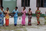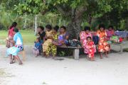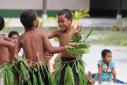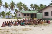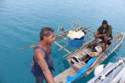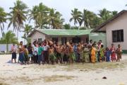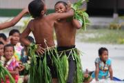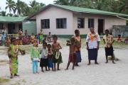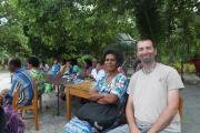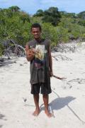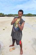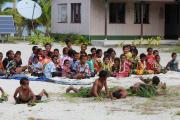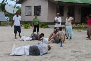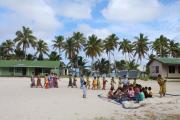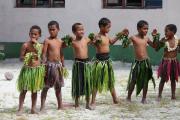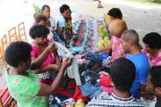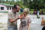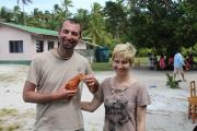 We also learned the technique of gathering shellfish . Already we can realize when a shell lurks under the sand, in this case we can easily spoon them out with one finger. | 19. day - 09/08/2013 - , DonationThe pre-school teacher gets only half of the salary that the teachers get paid. The rest was collected in donations. Since there is a lot of boat around, Joji (deputy headmaster) thought it was time to organise a school fundraiser. Each family brought a dish of fruit sold by a few dollars. The mango is not in season here, but there was papaya, coconut, banana and passion fruit. One ship had plenty of used clothing, which was also released for the locals for a sale of $1-2. They have collected more than $ 200.