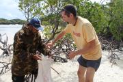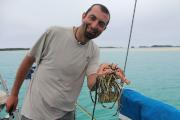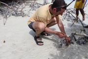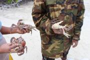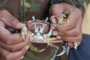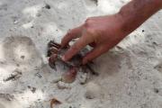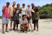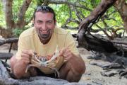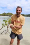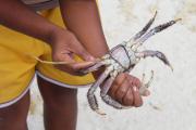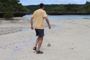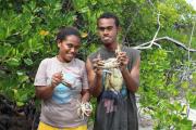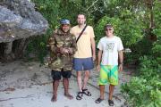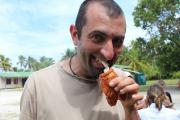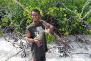 Together with the locals we caught a number of mud crabs. The mud crabs are large and tasty, but the claws have to be avoided while hunting. The villagers were incredibly skilled getting them even under the mangrove roots or in underground holes. We were also taught how to catch and prepare them. We prepared them on Rotor. The remaining crabs were returned to the village, from which we kept 3 more alive because we promised them to Bamboozle. The important thing is to keep the crabs alive, so they remain fresh. We fed them with coconuts and put them under a shadow so they would not dry out.