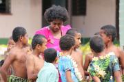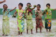 The day began with races (sack, egg balancing, glass tilt ) in which the sailors took part with the children. After lunch, the students presented the local Fijian meke dance. Then the locals asked the sailors to join the dance. They have a favorite music titled Azonto.