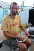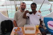 After the show, we left the village and together we celebrated our wedding anniversary. Fulaga is an amazing place for a wonderful occasion to celebrate.. | 20. day - 10/08/2013 - , SeafoodThe Italian sailors are really good fishermen. We ate with them their catch of the day. Caps Tres and we took the dessert. The dinner finally managed six catches (including shell pasta , a giant octopus with potatoes and fish in foil). The sea is rich with incredible food.