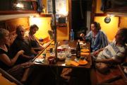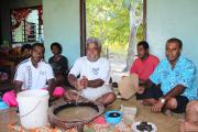 After they left , we joined a U.S. kava ceremony.. | 24. day - 14/08/2013 - , Farewell kava drinkingWe have been invited to the deputy headmaster for one last kava drinking. They were teasing us that we drank the first kava in Fulaga. Well, the first (with the village girls), the second (with Joji), the third (organised by the village), the fourth (with two American boats and with the villagers), the fifth (the villagers on Rotor), the sixth (with another American boat and the locals), the seventh and the final in the house of Joji. It seems we also have kava running through our veins.