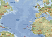 Lassan fordulunk csak az uticélunk felé, még mindíg délnyugat felé haladunk, egészen a 16-os északi szélességig le akarunk menni, ott várhatóan stabil marad a passzát-szél, ott fogunk Barbados irányába fordulni.