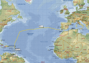 Napi pozíciók: 06:00 36-36.18N 9-55.92W log= 12041.0 14:30 36-24.95N 7-42.00W log= 12149.2
