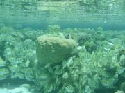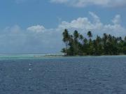 25. day - 22/09/2007 - We could see three motus before us and the middle hides a pass into the lagoon. The pass is not deeper then 1 meter where we could drift snorkel with the incoming water. The underwater world was full with corals and it looked like a marine aquarium with smaller and bigger fish. We also saw many urchins and some type of fish we have never seen before. At the end we asked for some pictures from Hafskip that they make with their underwater camera.