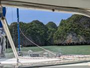 | 60. nap, 2022.04.19. , Ko PhanakReggel 9.30-kor indultunk. Gyenge, keleti 7-8-as szelek voltak, melyben kellemesen vitorláztunk 3-4 csomóval. A katamarán könnyű szerkezete, ebben a gyenge szélben is könnyen suhan.